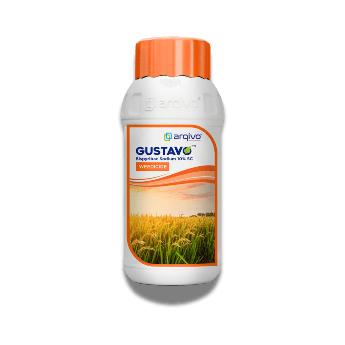 GUSTAVO™ is a broad-spectrum, systemic post-emergent herbicide containing 10% Bispyribac-Sodium. It is specially formulated for rice crops, targeting a wide range of grasses, sedges, and broadleaf weeds in both nursery and main fields.
