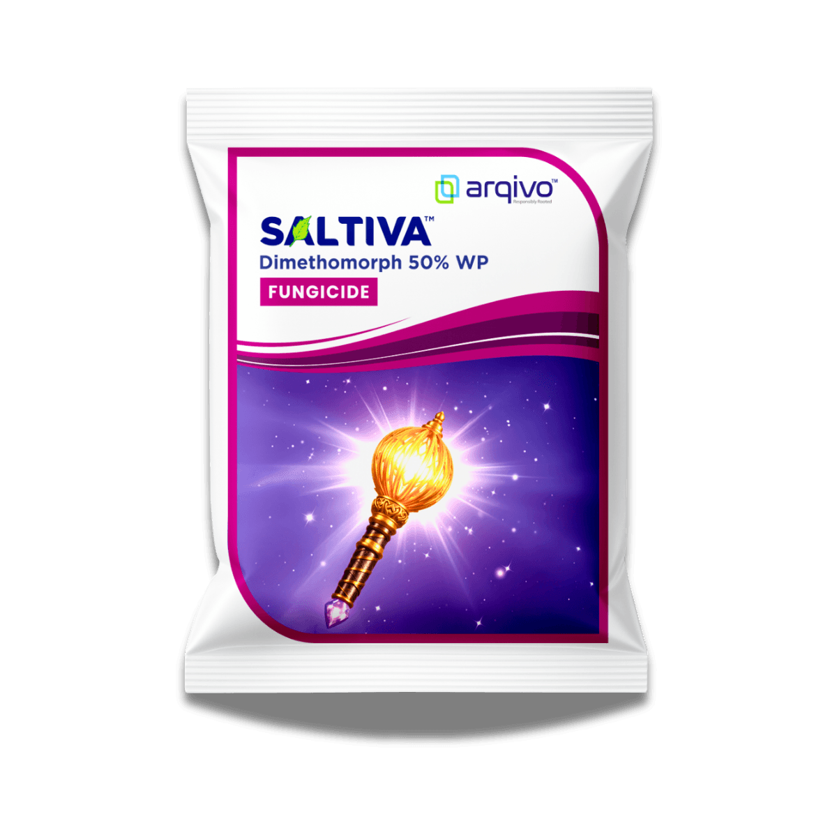 SALTIVA™ is a systemic fungicide containing Dimethomorph 50% WP, specifically designed to control Late blight and Downy mildew caused by fungi in the water mold family (Oomycetes). It moves upward through the plant to protect new growth and exhibits strong anti-sporulate activity, effectively preventing disease spread.