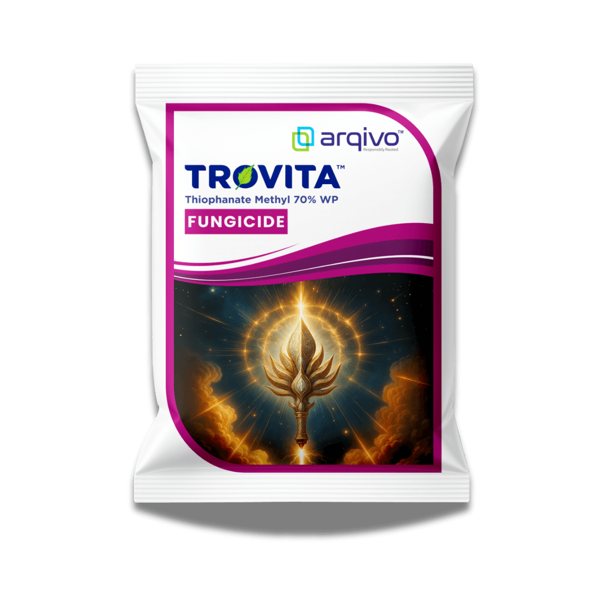 TROVITA™ is a systemic fungicide from the benzimidazole group, providing both protective and curative action. After application, it is rapidly absorbed through the leaf cuticle (trans cuticular) and moves within the leaf (intralaminar). Inside the plant, it is metabolized into MBC (Methyl Benzimidazole Carbamate)—a potent fungitoxic compound. MBC inhibits fungal cell division, effectively halting the growth and spread of fungal pathogens.